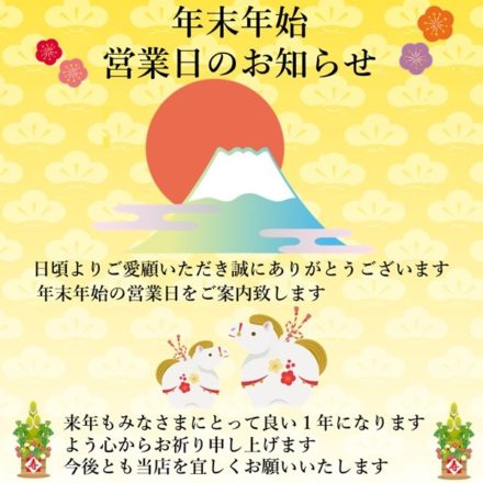 年末年始の営業日のご案内