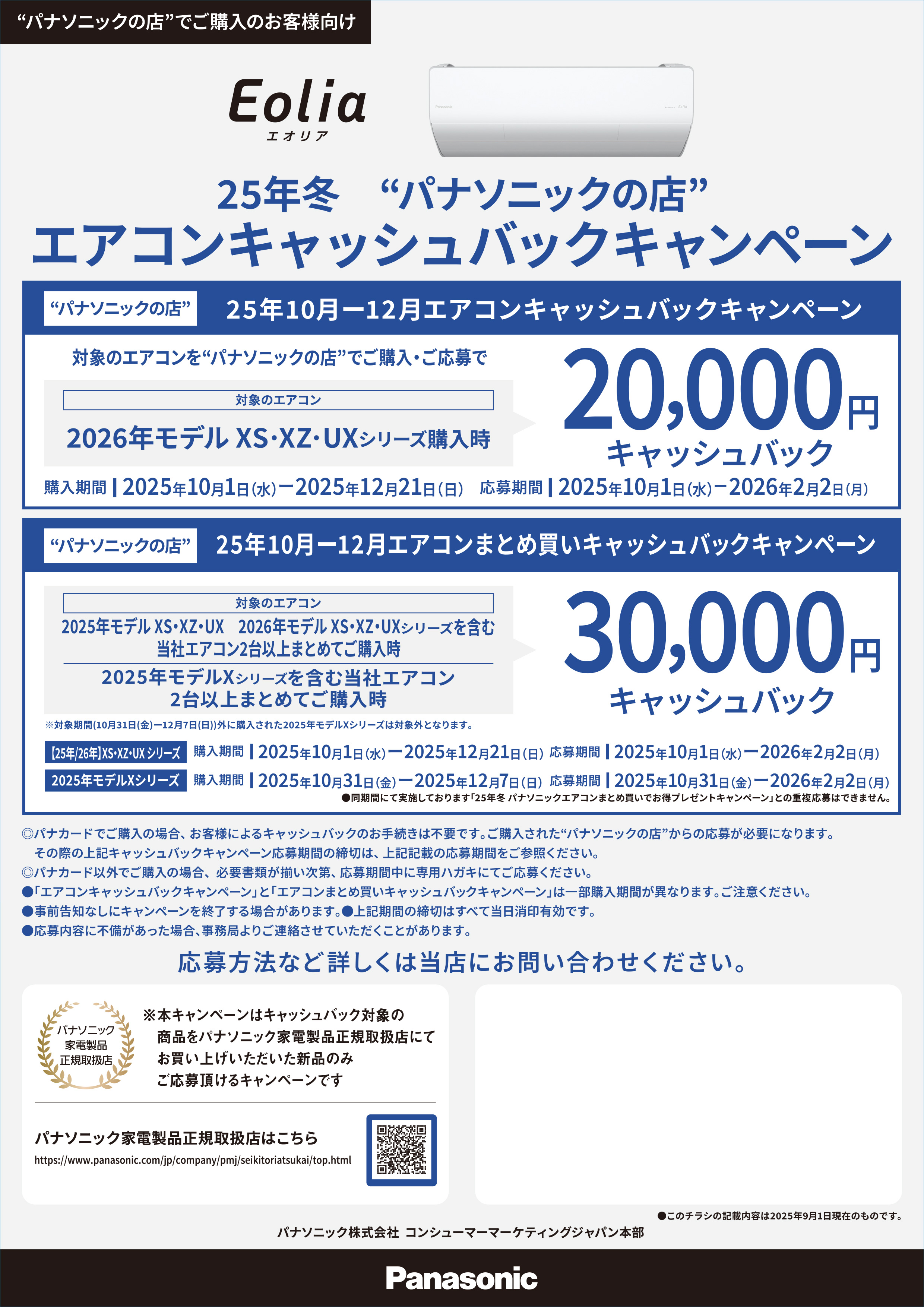 25年冬「パナソニックの店」エアコンキャッシュバックキャンペーン