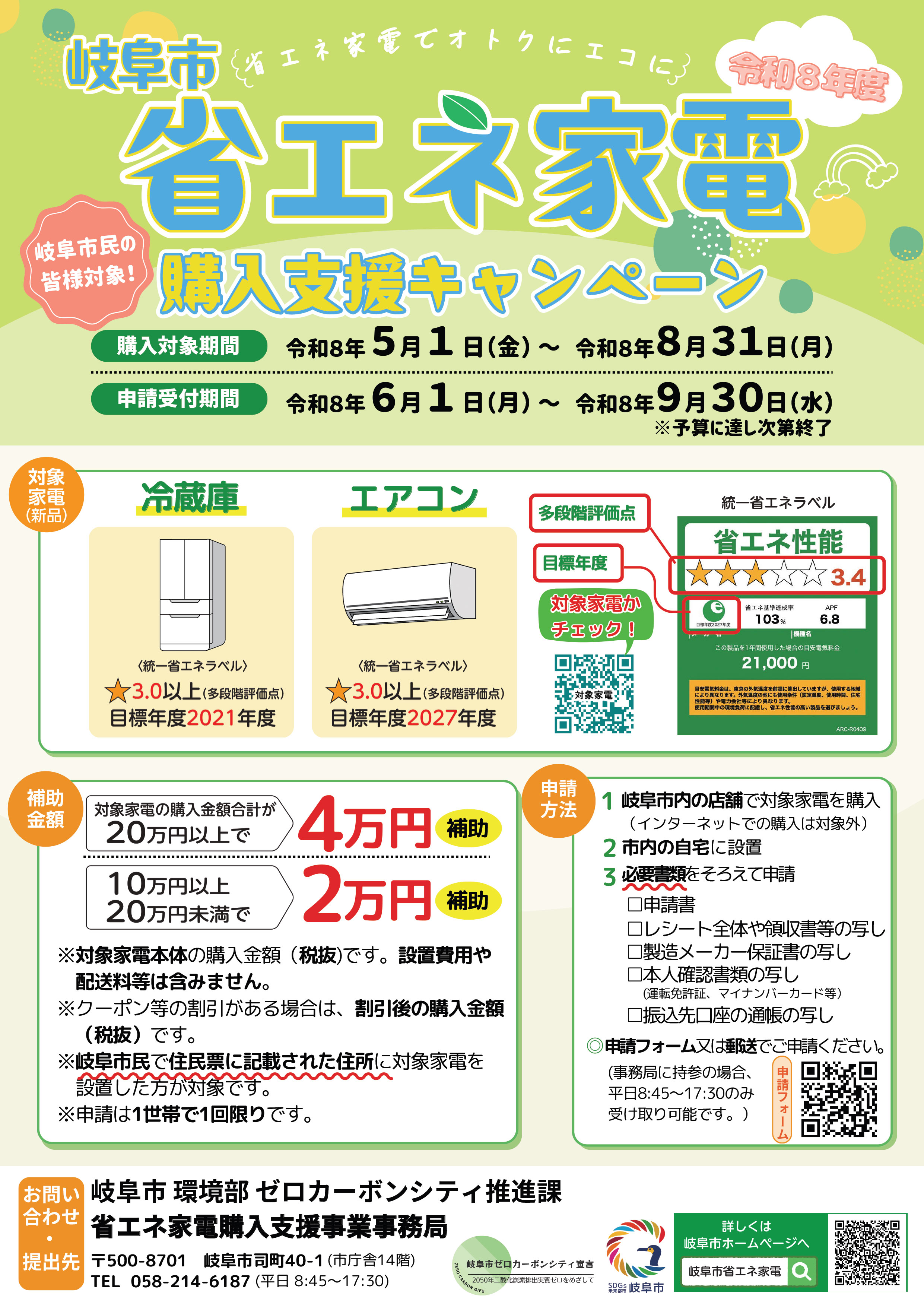 岐阜市省エネ家電購入支援キャンペーン始まります!