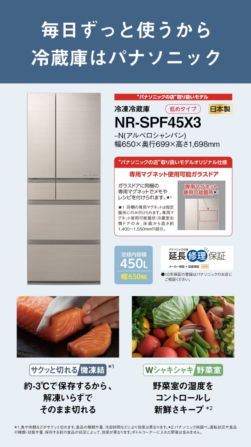 10年延長保証付き!”パナソニックの店”取り扱いモデル冷凍冷蔵庫(NR-SPF45X3)